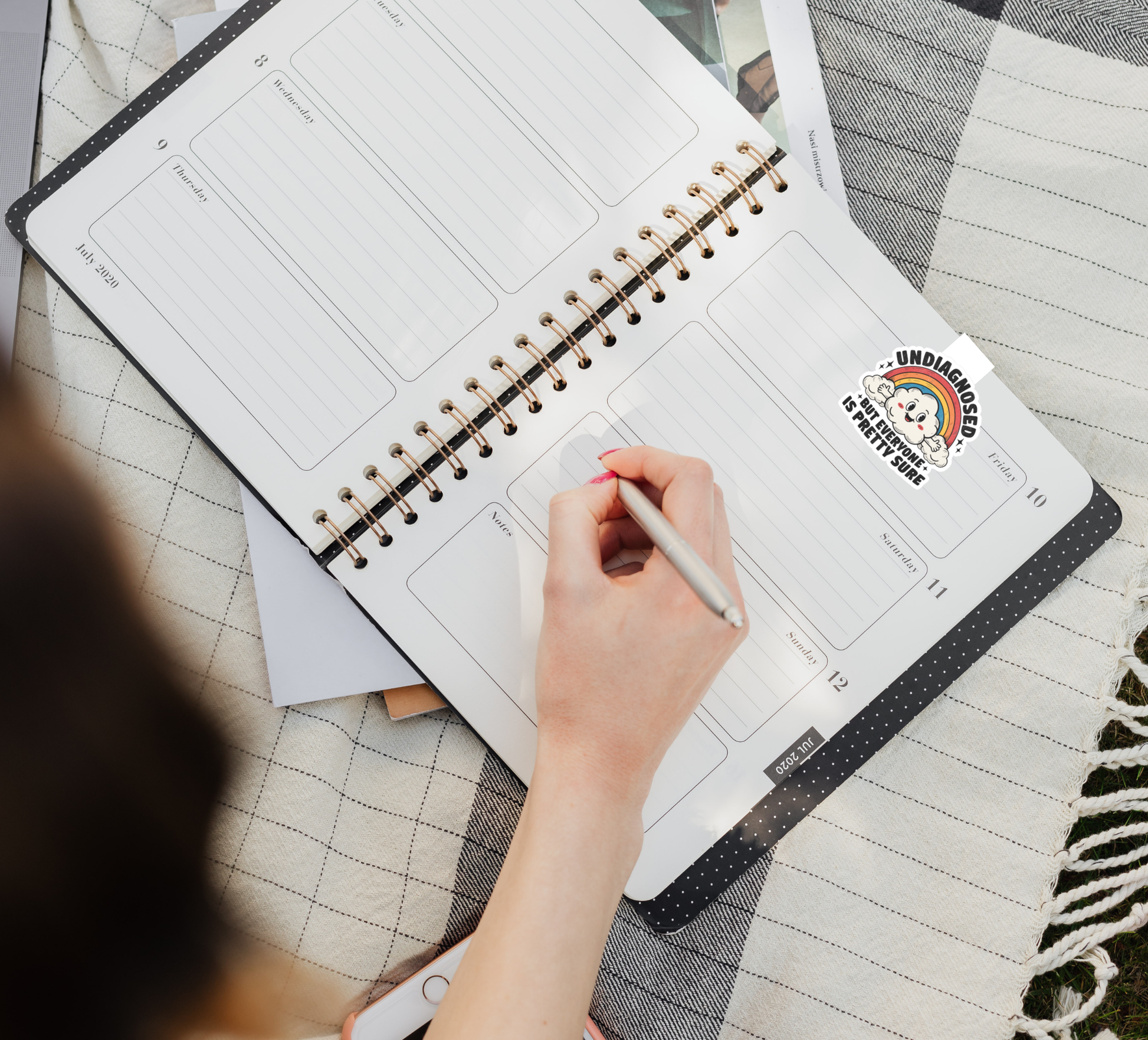 Keep your place in style with a touch of humor and positivity! This handmade “Undiagnosed But Everyone Is Pretty Sure” magnetic bookmark features a cheerful rainbow cloud design that’s sure to brighten your day and your pages. Perfect for readers, planners, and anyone who loves a bit of relatable fun.